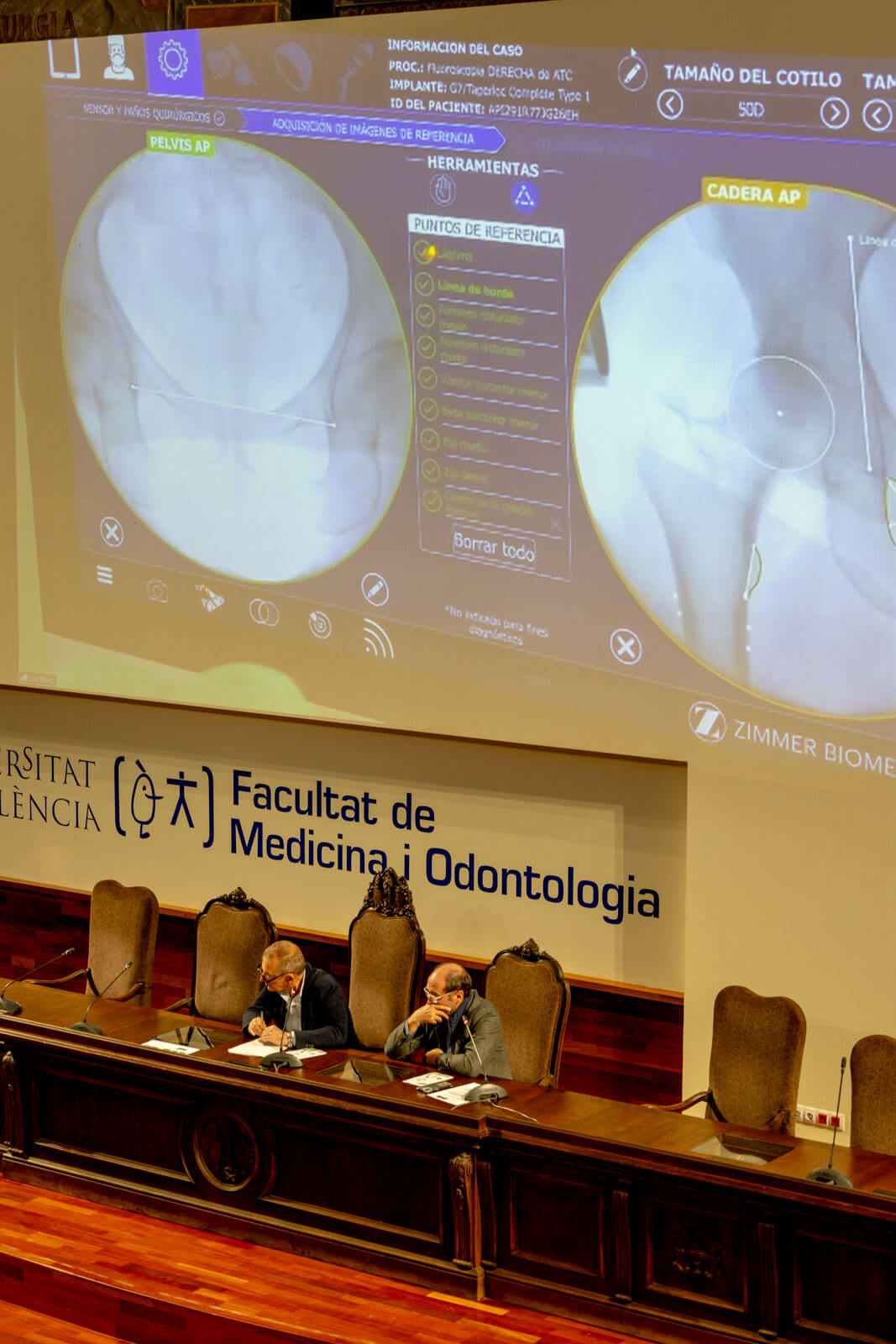 Participaron en la jornada el Dr. Antonio Silvestre Muñoz (director), Dr. Alfredo Subías López (co-director), Dr. José E. García Rellán (co-director), Dr. Raúl López Lozano (co-director). En las ponencias los doctores Dr. Oliver Marín (coordinador de cirugía de cadera Hospital Infanta Leonor Madrid), Dr. Jenaro Fernández Valencia (jefe Unidad de Cadera Hospital Clínic Barcelona), Dr. Francesc Anglés (jefe de servicio Hospital Mutua de Terrassa), Dr. José Baeza (jefe sección infecciones ortopédicas Hospital La Fe Valencia), Prof. Justin Cobb (Imperial College of London), Ing. Isabelle Hawkins (OSSIS-EMEA), Dr. Andrea de Amelio (cirujano ortopédico AOU Città della Salute Torino), y como moderadores los Dres. José Luis Rodrigo, Julio Doménech, Francisco Baixauli, Lorenzo Hernández y Enrique Gastaldi.